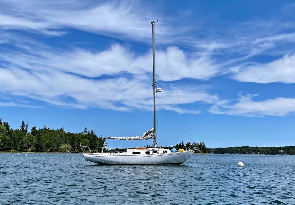 “Recent refurbish 11/2023. Bottom stripped to bare glass, fiberglass repairs, new thru-hulls, 3 coats barrier coat, 4 coats bottom paint, new hull color hunter green gel coat. In 2022, new packing gland, shaft, coupler, and cutlass bearing. 2021, interior and topsides repainted. Virtually brand new Universal Westerbeke M25 XPB-C. 25 hp diesel (74 hrs!). MSD, camp toilet, Exc. Sails and canvas. Sleeps 6. Pressure H2O w/ shower.” - pulled from ad. AND THIS MIGHT COME WITH A SLIP. Are you KIDDING ME? A true classic that has some life left to give!