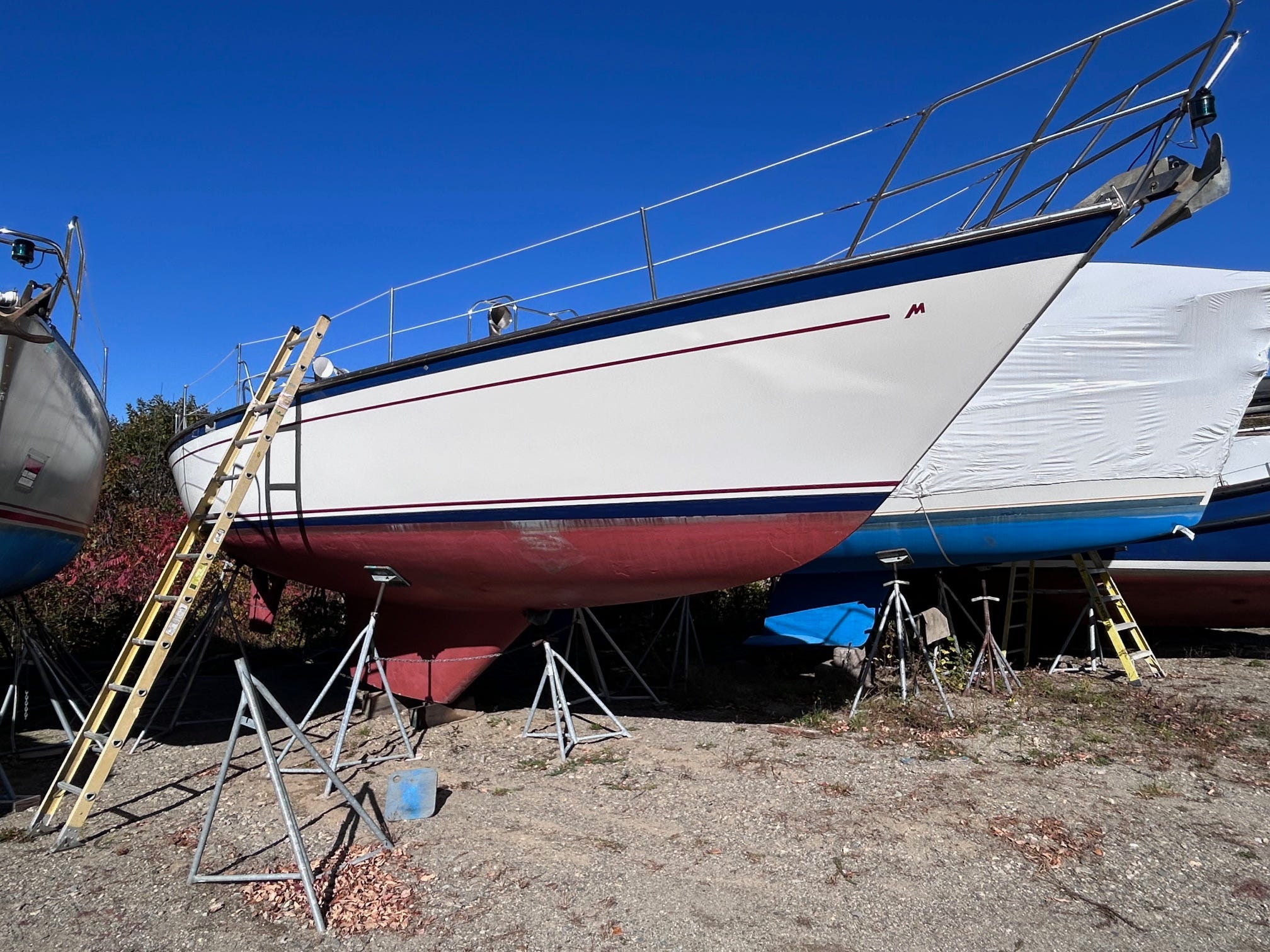 There’s camaraderie in it. A nod exchanged over a stubborn winch. A borrowed tool. A bit of advice shouted across stands. Unless you’re like us and your boat is in your backyard, then you’re just staring at trees hoping they’ll impart some words of encouragement.